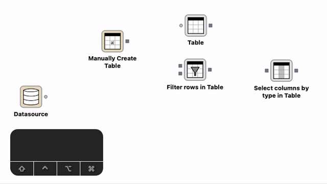 Ports which accept or output data with the Table type are represented by a gray square.